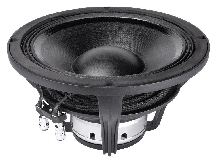 SPECIFICHE NOMINALI Diametro Nominale 250 mm (10 in) Diametro Esterno Massimo 261 mm (10.28 in) Interasse Fori di Fissaggio 246 mm (9.69 in) Diametro Foro di Incasso 232 mm (9.13 in) Profondità 141.3 mm (5.56 in) Spessore Flangia e Guarnizione 12.5 mm (0.49 in) Peso Netto 3.7 Kg (8.2 lb) Dimensioni Imballo (Scatola di cartone singola) 294 x 290 x 203 mm (11.6 x 11.4 x 8.0 in) Peso Lordo 4.3 Kg (9.5 lb) PARAMETRI TECNICI Impedenza Nominale 8 Ohm Impedenza Minima 6 Ohm Potenza Nominale (AES) (1) 600 W Potenza Massima (2) 1200 W Efficienza (1W/1m) 97 dB Gamma di Frequenza 60÷4000 Hz Diametro Bobina 77 mm (3 in) Materiale Avvolgimento Al Materiale Supporto Fibra di vetro Altezza Avvolgimento 18.5 mm (0.71 in) Altezza Traferro 12 mm (0.47 in) Densità di Flusso 1.1 T Tiplogia Magnete Pastiglia in Neodimio Materiale Cestello Alluminio Demodulazione Anello in Alluminio Profilo Bordo Membrana (3) Onda tripla Volume Occupato dall'Altoparlante 1.7 dm^3 (0.060 ft^3) Profilo Centratore 1x onda ad altezza variabile PARAMETRI THIELE AND SMALL Fs 60 Hz Re 5.1 Ohm Qes 0.30 Qms 11.1 Qts 0.29 Vas 20.5 dm^3 (0.72 ft^3) Sd 321 cm^2 (49.75 in^2) Xmax (4) 7.25 mm Xdamage (5) 19.5 mm Mms 50.3 g Bl 18 N/A Le 0.9 mH Mmd 47.0 g Cms 0.14 mm/N Rms 1.7 Kg/s Eta Zero 1.44 % EBP 200 Hz CODICE PRODOTTO (PART NUMBER) Terminali Push - Versione a 8 Ohm 02503972