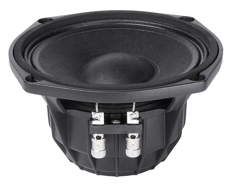 SPECIFICHE NOMINALI Diametro Nominale 130 mm (5 in) Diametro Esterno Massimo 153/140 mm (6.02/5.51 in) Interasse Fori di Fissaggio 139 mm (5.5 in) Diametro Foro di Incasso 129 mm (5.08 in) Profondità 80.2 mm (3.16 in) Spessore Flangia e Guarnizione 8.8 mm (0.35 in) Peso Netto 0.95 Kg (2.09 lb) Dimensioni Imballo (Scatola di cartone singola) 165 x 160 x 103 mm (6.5 x 6.3 x 4.1 in) Peso Lordo 1.2 Kg (2.65 lb) PARAMETRI TECNICI Impedenza Nominale 12 Ohm Impedenza Minima 8.8 Ohm Potenza Nominale (AES) (1) 80 W Potenza Massima (2) 160 W Efficienza (1W/1m) 99 dB Gamma di Frequenza 180÷6300 Hz Diametro Bobina 32 mm (1.26 in) Materiale Avvolgimento Cu Materiale Supporto Kapton Altezza Avvolgimento 7.5 mm (0.29 in) Altezza Traferro 6 mm (0.24 in) Densità di Flusso 1.65 T Tiplogia Magnete Anello in Neodimio Materiale Cestello Alluminio Demodulazione No Profilo Bordo Membrana (3) M-Roll (2 onde) Volume Occupato dall'Altoparlante 0.6 dm^3 (0.021 ft^3) Profilo Centratore 1x onda ad altezza costante PARAMETRI Thiele and small Fs 180 Hz Re 7.2 Ohm Qes 0.54 Qms 2.70 Qts 0.45 Vas 1.20 dm^3 (0.04 ft^3) Sd 94.2 cm^2 (14.6 in^2) Xmax (4) 2.75 mm Xdamage (5) 15.2 mm Mms 8.2 g Bl 11.3 N/A Le 0.15 mH Mmd 7.5 g Cms 0.09 mm/N Rms 3.45 Kg/s Eta Zero 1.29 % EBP 333 Hz