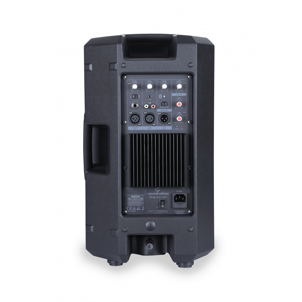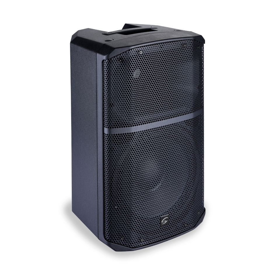 Il woofer da 10” e il driver a compressione da 1” sono pilotati da un amplificatore in Classe AB con potenza di picco fino a 480W. L’housing, dal look elegante e professionale, ha una architettura vented con aperture bass-reflex negli angoli inferiori vicino al woofer. La guida d’onda simmetrica ha una copertura angolare 90° (H) x 60° (V). La parte posteriore consente l’uso in orizzontale – tipo monitor da palco – con angoli di 45° e 25°. Sono infine presenti 3 punti di aggancio M8 per il fissaggio sospeso e il foro da 36mm per uso su palo o tripode.