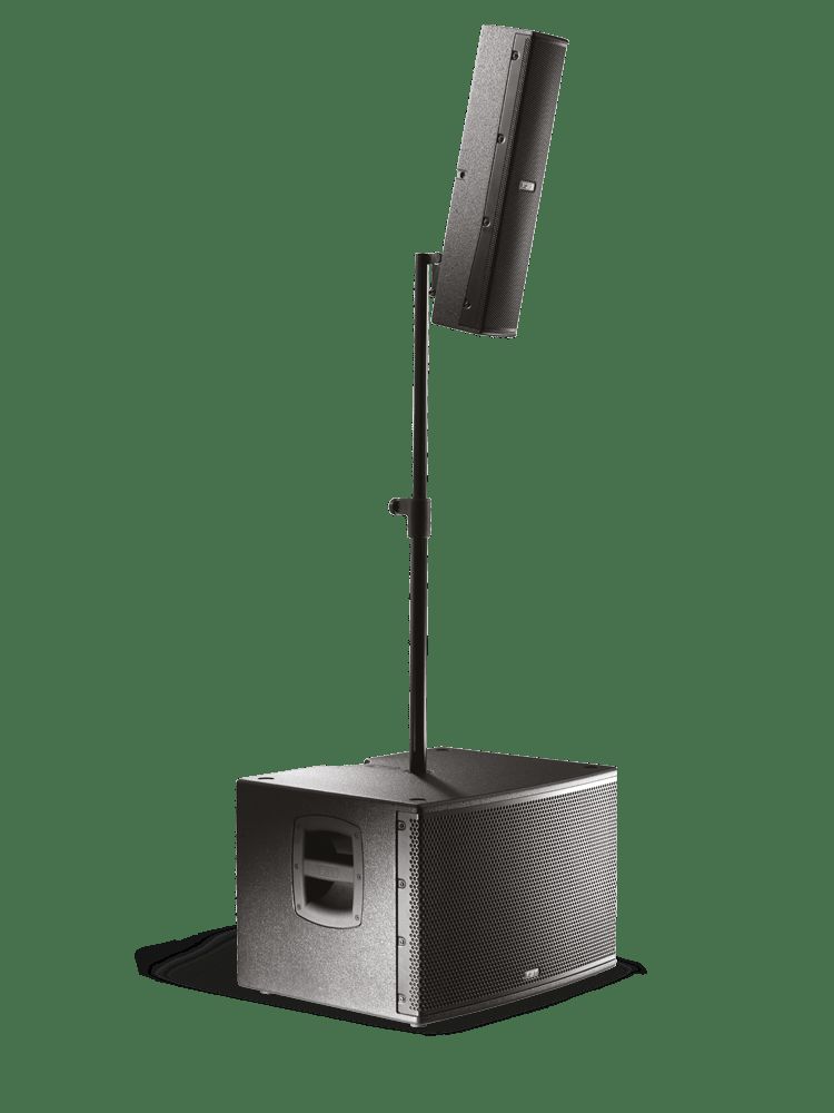 SEMPRE CON TE Il Vertus CS 1000, line array compatto a due vie biamplificato dal suono potente ed equilibrato, è il partner perfetto per chi è in cerca di un sistema facilmente trasportabile, adatto ad un utilizzo intensivo e che faccia impennare la qualità dell’ascolto. Vertus CS 1000 è costituito da un line array passivo a 2 vie biamplificato e un subwoofer, entrambi dotati di cabinet in multistrato di betulla, resistente e di alta qualità. TOP & SUB Grazie ai suoi sei woofer fullrange custom al neodimio da 70mm (3”) con bobina da 20mm (0.75”) ad alta efficienza, il line array è in grado di garantire una dispersione del suono di 110°H x 30°V, con una risposta in frequenza da 40Hz a 20KHz. Il satellite è inoltre dotato di un sistema di aggancio per accessori opzionali che permettono di estendere la lunghezza del line array accoppiando due satelliti uno sopra l’altro oppure fare installazioni sospese a muro. Il subwoofer custom da 320mm (12”) con bobina da 64mm (2.5”) ad alta escursione in bass-reflex è dotato di maniglia in pressofusione di alluminio con inserti in gomma, supporto M20 per apposito palo di sostegno del satellite composto da 3 moduli avvitati uno sull’altro e uno snodo che consente l’inclinazione verticale. LEGGERO, POTENTE E PRATICO Il sistema è amplificato in classe D da 600Wrms per LF e 400Wrms per HF con alimentatore switching, ed è dotato di un processore DSP con 8 presets di equalizzazione, che garantiscono una resa sonora ottimale per qualsiasi situazione. Il pannello di controllo è dotato di volume master, presets, volume satellite, HPF, status led, ingresso e link XLR e Neutrik SPEAKON per il collegamento colonna. Il Vertus CS1000 è facilmente espandibile per una potenza totale di 8000W peak (sistema stereo composto da 4 x Vertus CS1000) grazie alla modularità del sistema, che consente di raddoppiare sub e satellite a formare un unico sistema tramite accessori opzionali. Inoltre, il palo di sostegno e il satellite stesso sono completamente integrati nel cabinet del Subwoofer, e un sistema di tenuta a pulsante permette di bloccare il satellite in sede per il trasporto.