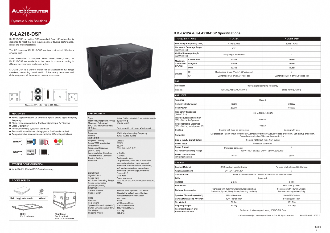 4 pz AUDIOCENTER SUBWOOFER K-LA218-DSP