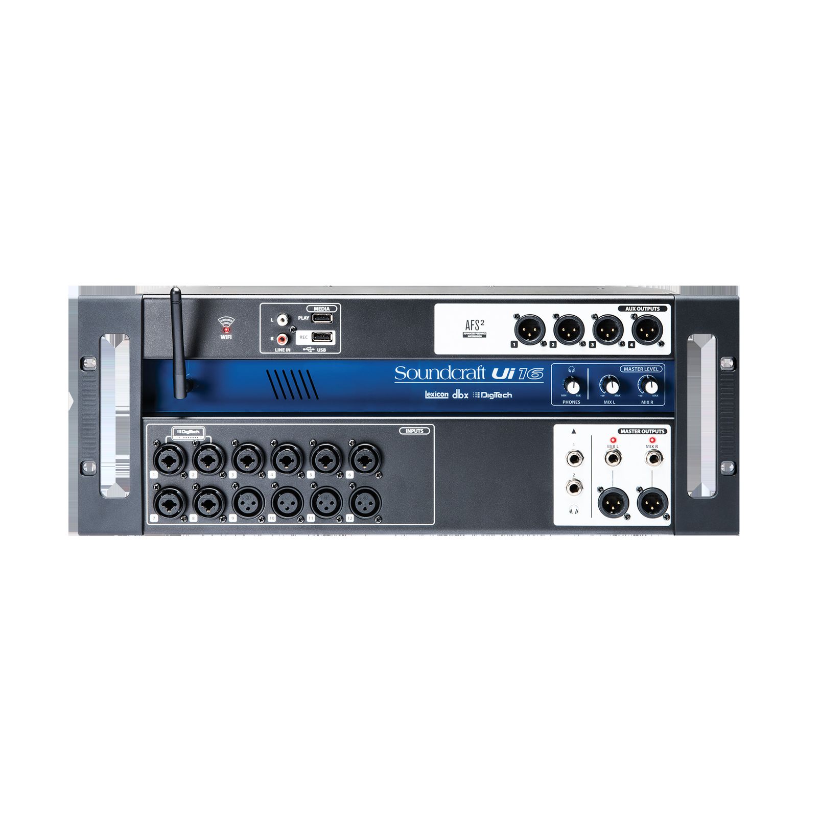 Ui racchiude un sistema di mixaggio digitale completo in un formato stagebox compatto e intelligente, con WiFi integrata e la possibilita' di essere controllato da qualsiasi dispositivo collegato tramite un web browser HTML5. Il modello Ui16 vanta otto ingressi Mic/Linea combo XLR, quattro ingressi Mic XLR, due ingressi per strumenti Hi-Z e un ingresso di linea stereo RCA. E' inclusa una porta USB a due canali come lettore multimediale, insieme a quattro uscite Aux bilanciate XLR, due uscite cuffia con controllo di livello su Jack da 6,3 mm commutabili in ulteriori due Aux via software, oltre alle uscite Master bilanciate su XLR e su Jack da 6,3 mm. La porta USB a due canali e' compatibile in lettura con i formati audio MP3, WAV e AIFF, ed e' inoltre possibile la registrazione diretta su USB sempre a due canali. La serie Ui dispone di DSP a bordo dbx, Digitech e Lexicon, inclusi dbx AFS2, Digitech Amp Modeling, e altro ancora. Da entrambi i modelli e' possibile controllare e richiamare da remoto Gain e alimentazione phantom, EQ parametrico a 4 bande, filtro passa-alto, compressore, de-esser e noise gate sui tutti canali di ingresso. Equalizzatore grafico a 31 bande, noise gate e compressore su tutte le uscite, oltre a un analizzatore di frequenza in tempo reale (RTA) su ingressi e uscite. Sono presenti anche tre Bus dedicati agli effetti Lexicon per Riverbero, Delay e Chorus. Inoltre, i controlli del mixer includono tra gli altri: Sub Group, Mute Group e View Group.